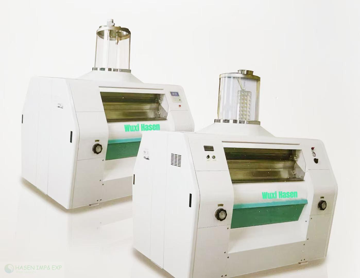 The roller mill is the main equipment for milling section in flour mills. It mainly depends on a pair of differential transmission and relative rotation rolls to break wheat, meanwhile, scrapes endosperm from wheat bran, then endosperm grinding into flour. The material can be extruded, sheared and broken during the equipment working and so as to achieve a certain grinding effect, each roller mill has two independent drive, feeding, and grinding systems and play their functions in the flour passages.